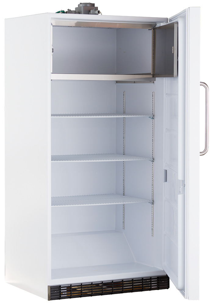 Hazardous Location (Explosion Proof) Refrigerators and Freezers meet NFPA and OSHA guidelines for Hazardous Location, Class 1, Division II, Groups C & D guidelines. Units are not intended for use in general clinical or research laboratories. All spark generating electrical components and connections (compressor, thermostat) are isolated and sealed in vapor-proof enclosures. Electrical wiring is hardwired for additional safety measures. Models features a mechanical thermostat sealed in UL listed explosion proof box, keyed door locks, and a one-year parts and labor warranty.
