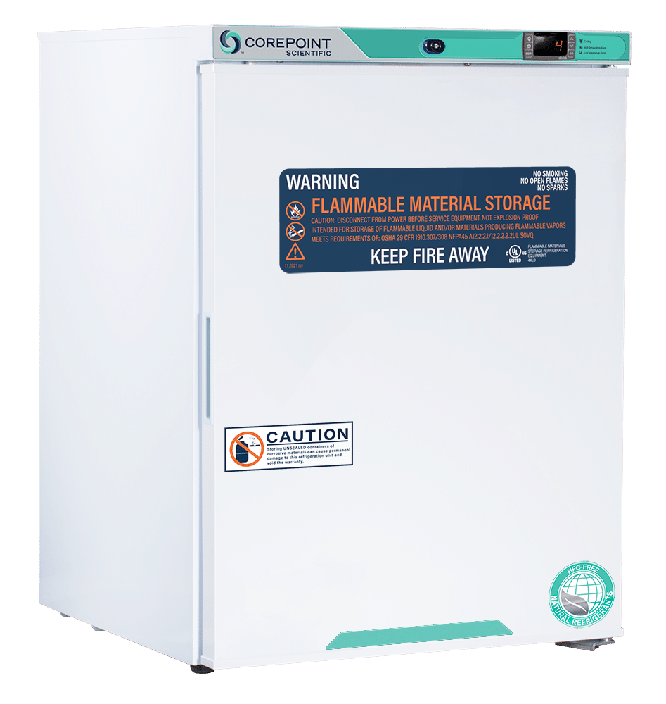 White Diamond Series Flammable Storage Undercounter Refrigerators meet NFPA and OSHA guidelines 45 and 70 for the refrigerated storage of flammable (volatile) materials in general laboratory work areas. There are no electrical components located in the interior of the unit and the compressor’s electrical components have been sealed in a vapor-proof enclosure for additional safety. These units are NOT designed for use in environments where volatile/explosive conditions could potentially exist.