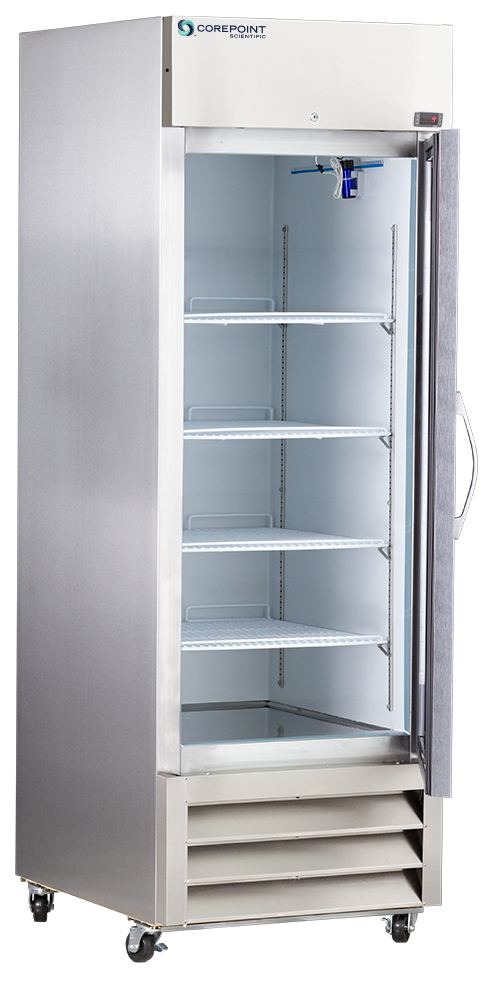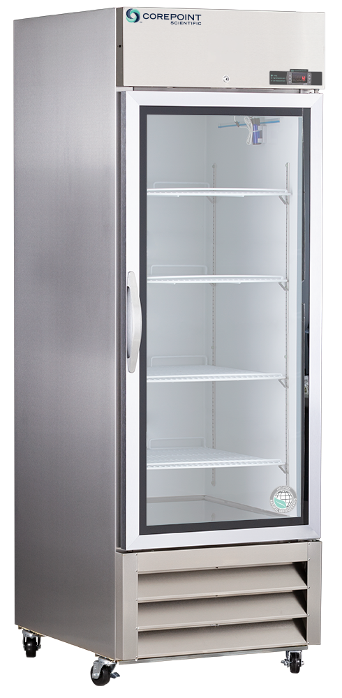 General Purpose Glass Door Stainless Steel Refrigerator with digital display microprocessor temperature controller. This unit features hydrocarbon natural refrigerants and sensor error alarm and remote alarm contacts. Audible and visual high/low alarms and forced draft circulation are some of the features of this well rounded unit.