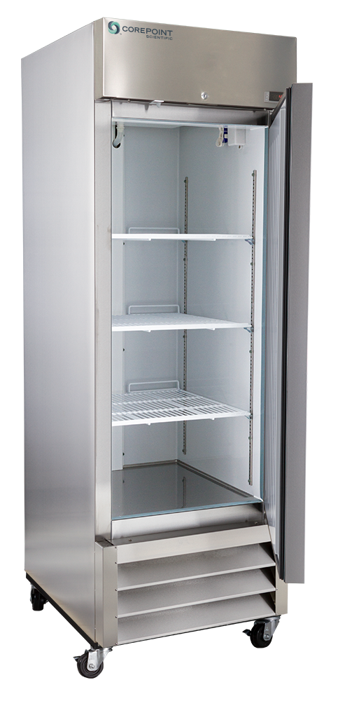 General Purpose Solid Door Stainless Steel Refrigerator with digital display microprocessor temperature controller. This unit features hydrocarbon natural refrigerants and sensor error alarm and remote alarm contacts. Audible and visual high/low alarms and forced draft circulation are some of the features of this well rounded unit.