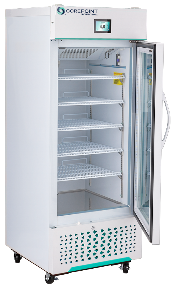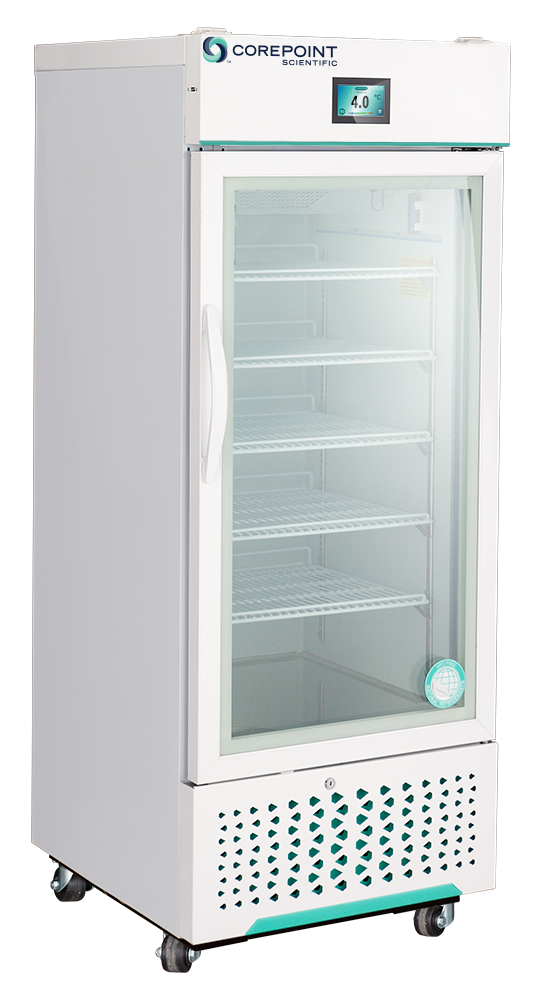 White Diamond Series Glass Door Laboratory and Medical Stainless Steel Refrigerator with Microprocessor temperature controller. This unit features hydrocarbon natural refrigerants and a touch screen digital temperature display with user friendly interface. Audible and visual high/low alarms and remote alarm contacts are some of the features of this well rounded unit.