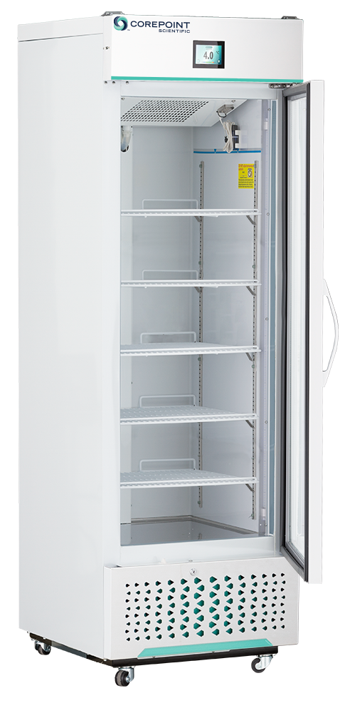 White Diamond Series Glass Door Laboratory and Medical Stainless Steel Refrigerator with Microprocessor temperature controller. This unit features hydrocarbon natural refrigerants and a touch screen digital temperature display with user friendly interface. Audible and visual high/low alarms and remote alarm contacts are some of the features of this well rounded unit.